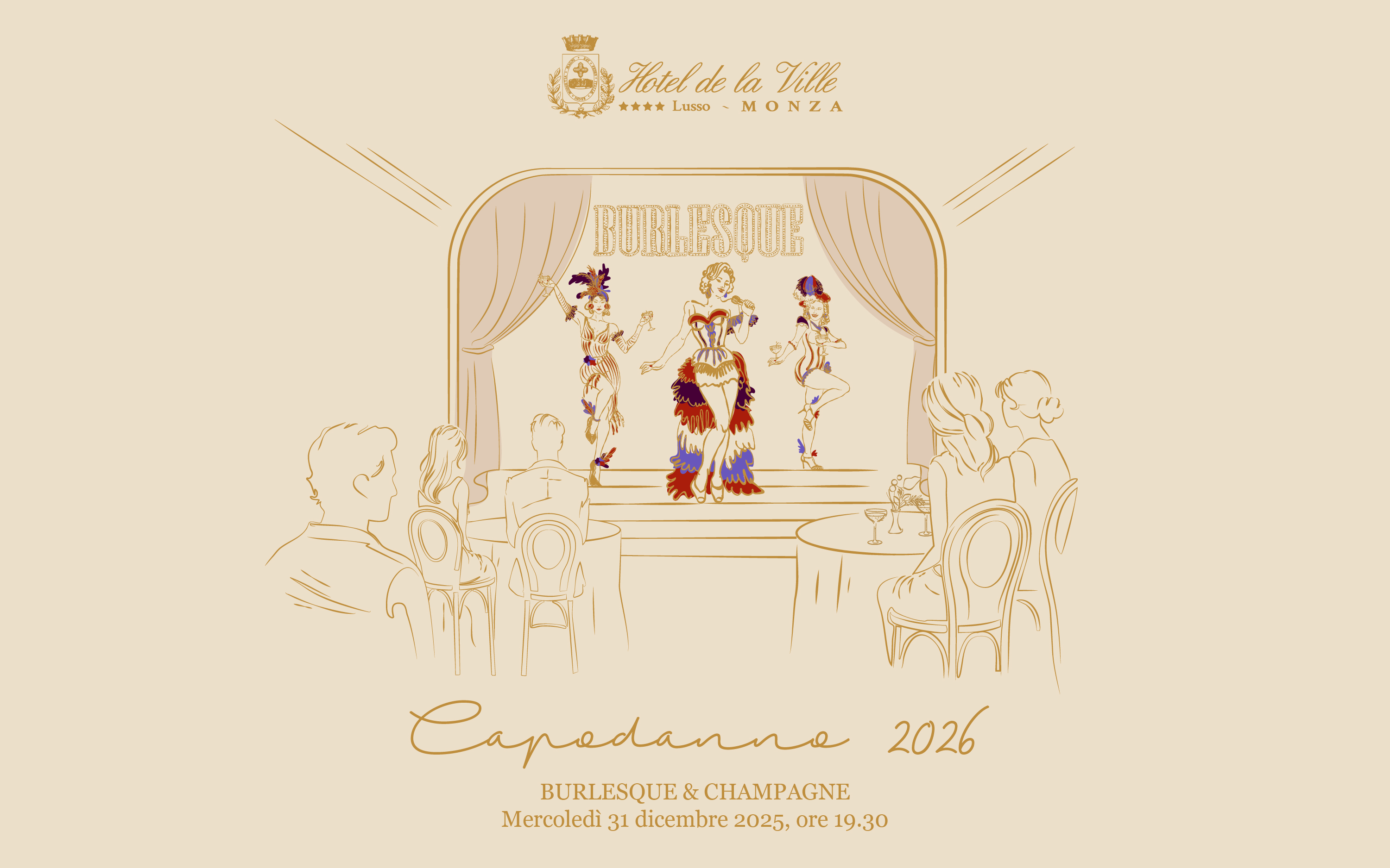 La proposta per l’ultima notte dell’anno promette una serata curata nei minimi dettagli: Hotel de la Ville organizza una serata di intrattenimento con spettacolo di burlesque, pensato per aggiungere un tocco di fascino d’altri tempi e ironia alla serata, accompagnato da una cena di gala a 4 portate.